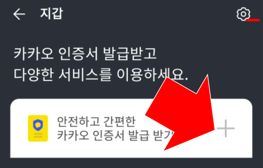 아까 처음 프로필 설정을 위한 인증서 화면에서 이번에는 우측의 톱니바퀴 모양을 클릭하여 설정메뉴로 접속해 주시기 바랍니다.
